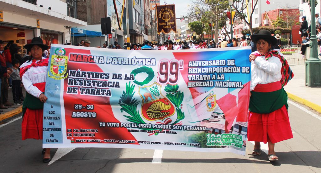 Tarata al igual que Tacna tambien sufrió el duro cautiverio durante la ocupación chilena, por ello este 1 de setiembre conmemora su 99 aniversario de reincorporación al territorio peruano con una marcha patriótica que une a la comunidad en un acto de memoria histórica y reafirmación de su identidad nacional. Este evento no solo celebra el retorno de Tarata a la patria, sino también la resistencia y el valor de sus habitantes.