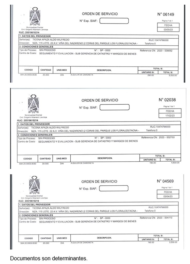 Documentación pública con la que se cuenta da a conocer que el consejero regional por Tacna, Prof. Aldo Wilfredo Ticona Apaza, estaría involucrado en un serio escándalo de contratación irregular. Los documentos registrados, durante el año 2023, el consejero habría brindado servicios a la Municipalidad Distrital de Gregorio Albarracín Lanchipa con el alquiler de su camioneta de placa Z7O-903, vehículo que se encuentra registrado a nombre suyo y de su cónyuge, Deysi Miranda Aro, según la SUNARP.